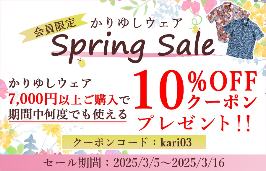 かりゆしウェア全品で使用できる20%オフクーポン配布中12月21日まで!詳しくはこちら
