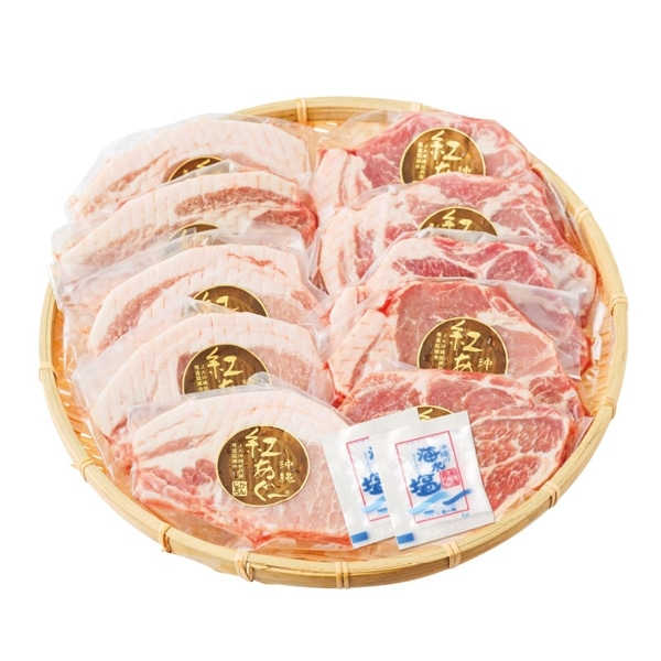 紅あぐーロースステーキ100g×5、紅あぐー肩ロースステーキ100g×5、海水塩5g×2