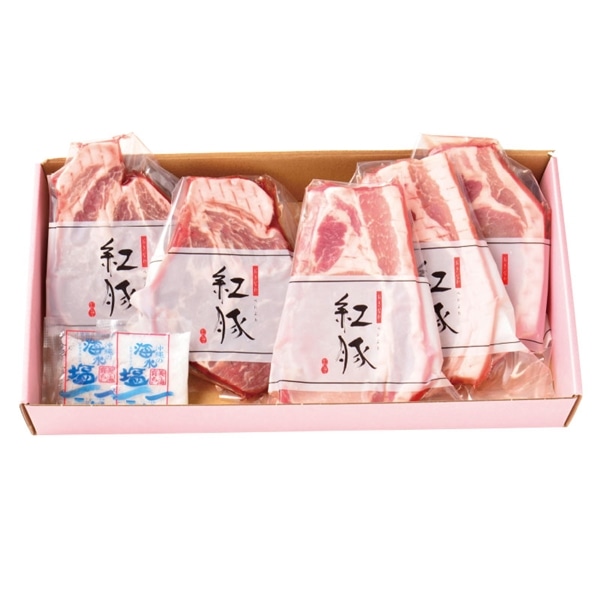 紅豚ロースステーキ100g×3、紅豚肩ロースステーキ100g×2、海水塩5g×2