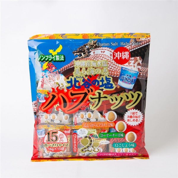 北谷の塩ハブナッツ 大袋 (240g)島とうがらしマヨ、ゴーヤーチーズ、島こしょうの3種アソート。沖縄産「北谷の塩」が素材を引き立てます。
