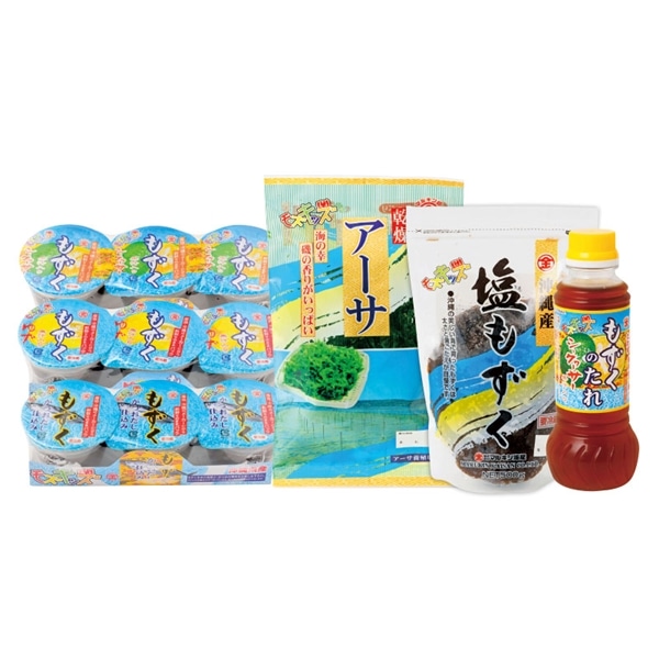味付けもずく(シークワーサー×1・ゆず×1・かつお×1)・乾燥アーサ18g×1・塩もずく500g×1・もずくのタレ(シークワーサー味)×1
