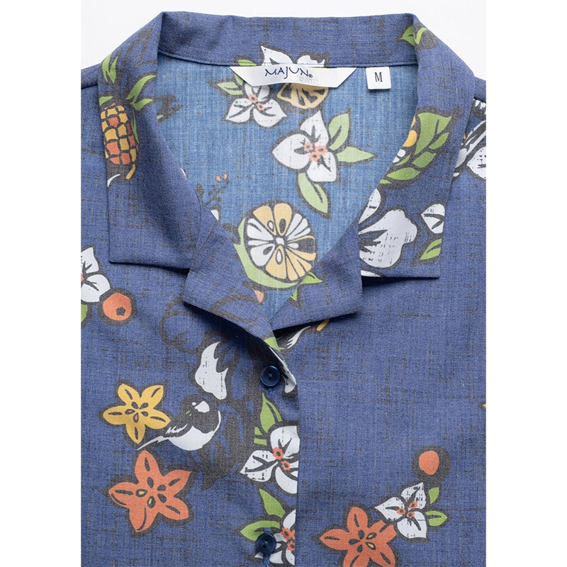 シャツの付属品と言えば、「ボタン」があります。 MAJUNではその「ボタン」選びにも徹底したこだわりを持っています。 プリントの柄や色に合わせ、ボタンの素材や色合いを選別し、着用シーンなども考慮し選定しています。 シャツのイメージで、キレイ目スタイル、ラフ間のあるカジュアルスタイル、それぞれのイメージに ボタンの素材感を組み合わせ商品企画し商品化しています。 天然素材「貝」や「ココナッツ」などボタンの存在感もしっかりシャツ全体を引き立てるように ワンランク上のものづくりをこだわっています。