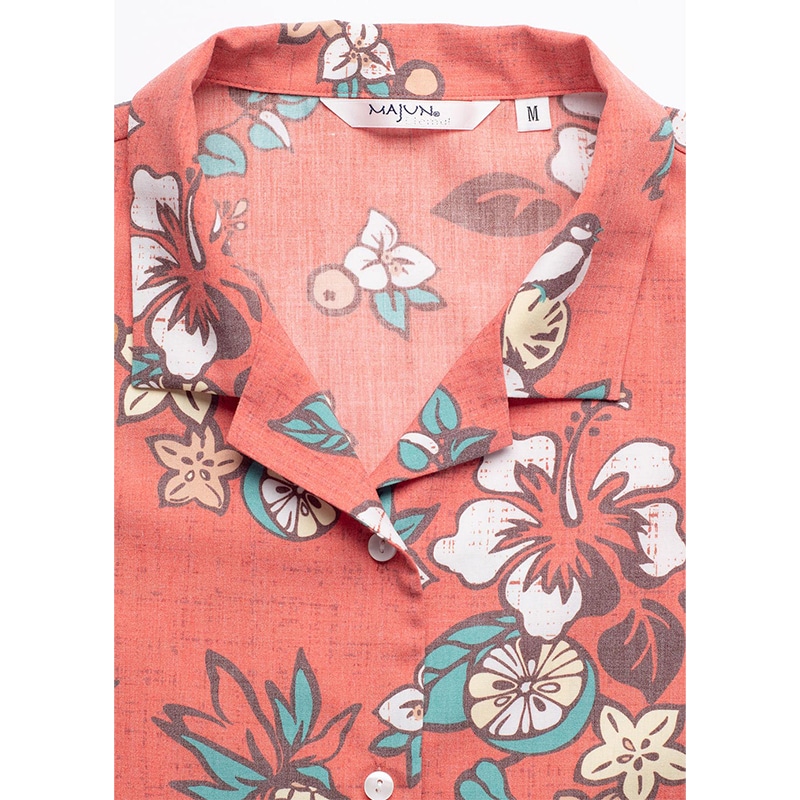 シャツの付属品と言えば、「ボタン」があります。 MAJUNではその「ボタン」選びにも徹底したこだわりを持っています。 プリントの柄や色に合わせ、ボタンの素材や色合いを選別し、着用シーンなども考慮し選定しています。 シャツのイメージで、キレイ目スタイル、ラフ間のあるカジュアルスタイル、それぞれのイメージに ボタンの素材感を組み合わせ商品企画し商品化しています。 天然素材「貝」や「ココナッツ」などボタンの存在感もしっかりシャツ全体を引き立てるように ワンランク上のものづくりをこだわっています。