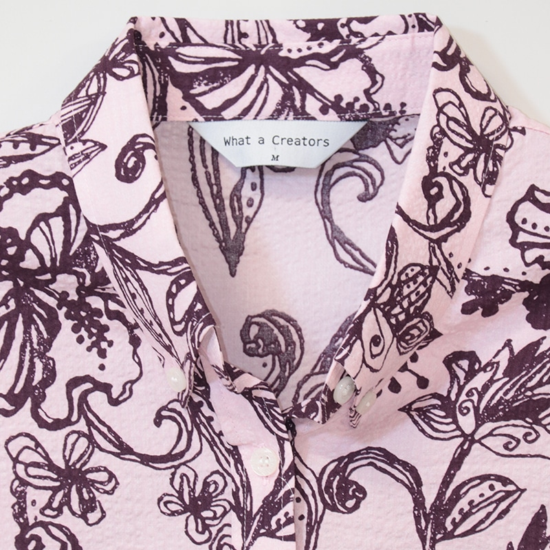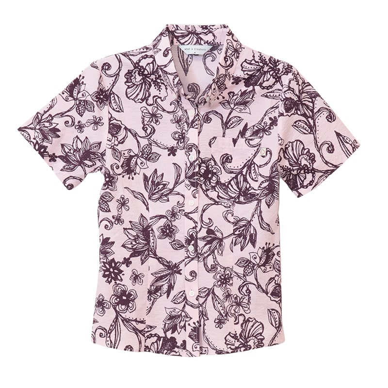 【送料無料】パステルサラサ柄 サッカー生地 かりゆしウェアP1025-08L L|サンエーオンラインショップ(本店)