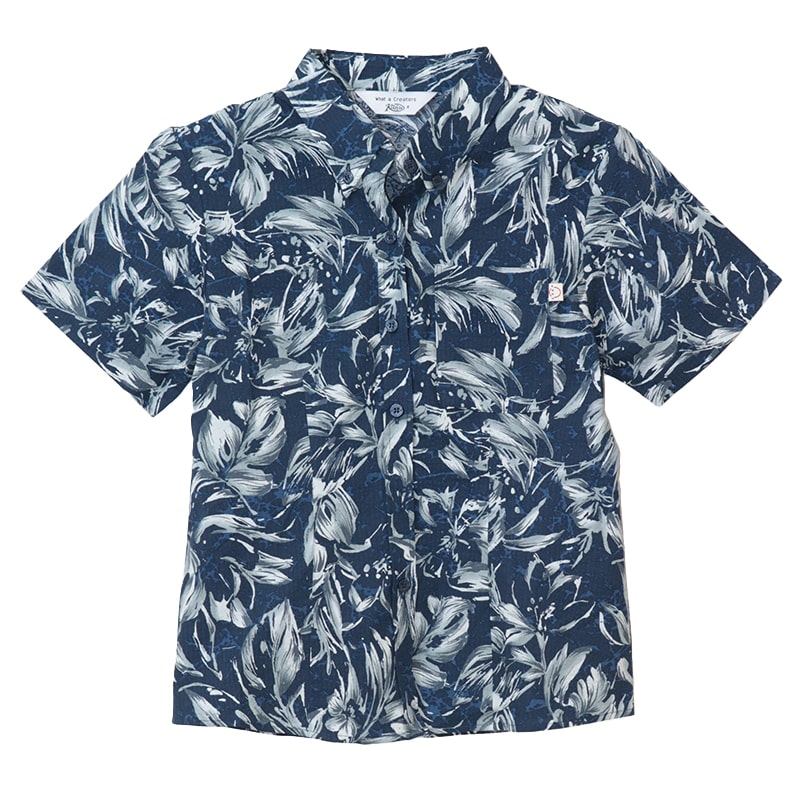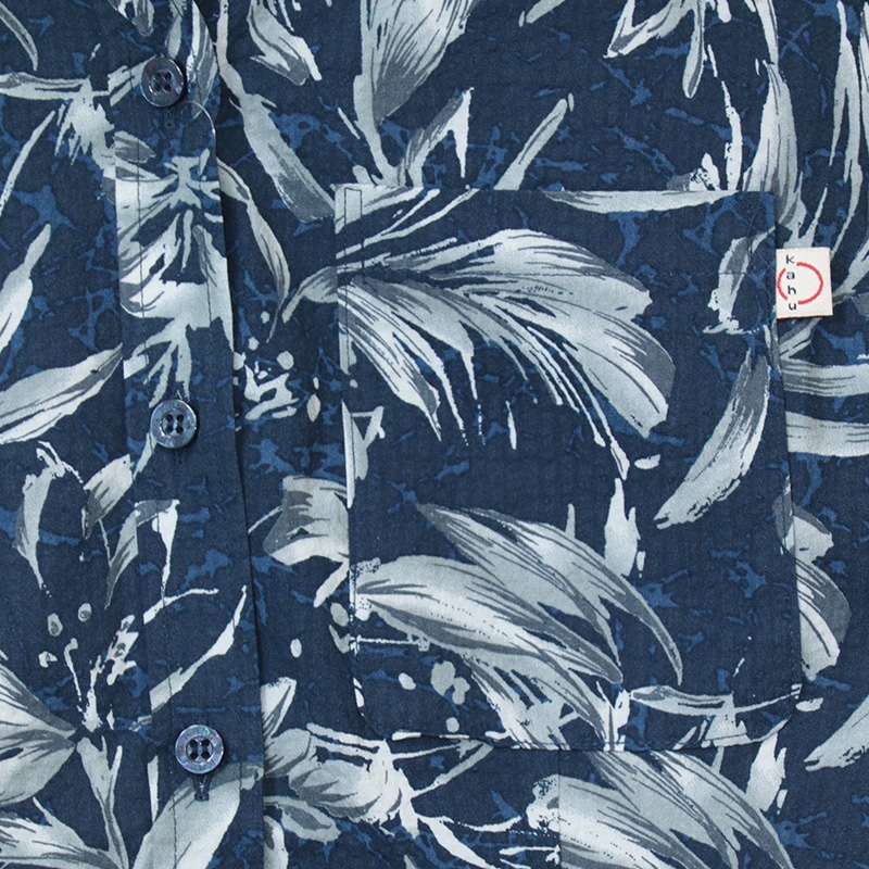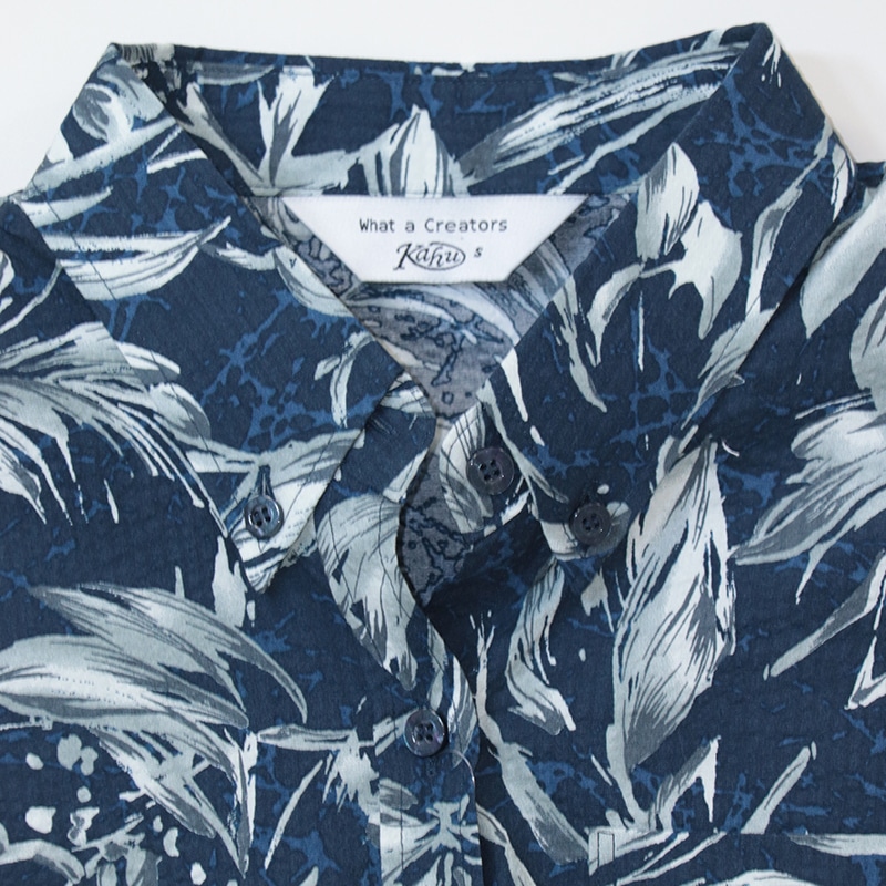 【送料無料】ブラッシュリーフ柄 サッカー生地 かりゆしウェアP1025-09L L|サンエーオンラインショップ(本店)
