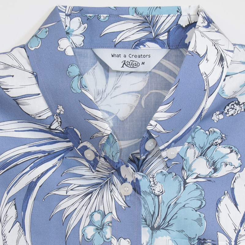 【送料無料】形態安定 トロピカルフラワー柄 かりゆしウェアP1025-04L|サンエーオンラインショップ(本店)