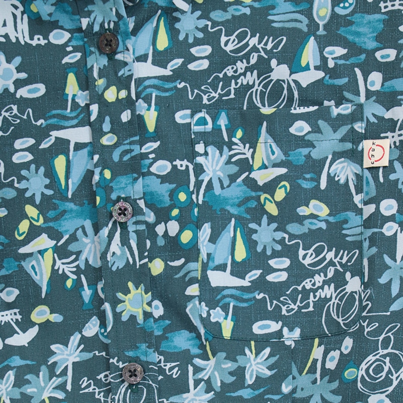 【送料無料】形態安定 ヨットハーバー濃地柄 かりゆしウェアP1025-17L|サンエーオンラインショップ(本店)