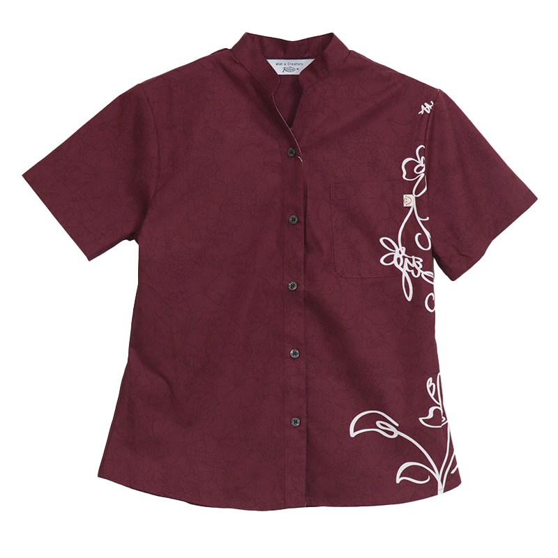 【送料無料】形態安定 シンプルハイビライン柄 マオカラーかりゆしウェアP1025-06L|サンエーオンラインショップ(本店)