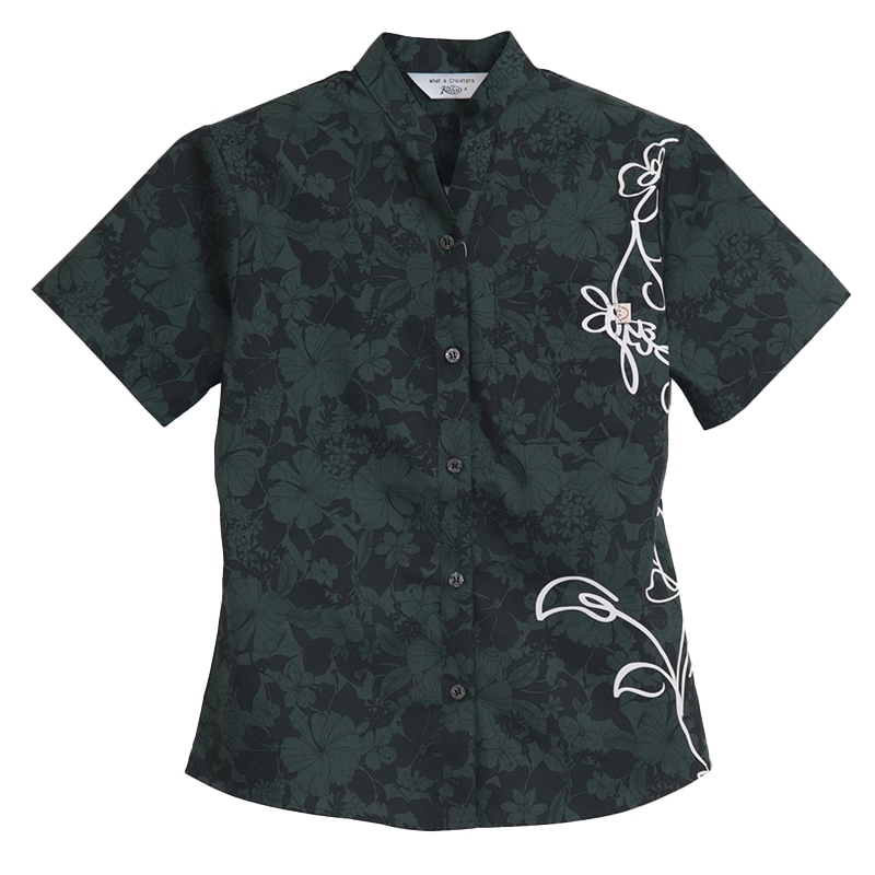 【送料無料】形態安定 シンプルハイビライン柄 マオカラーかりゆしウェアP1025-06L|サンエーオンラインショップ(本店)