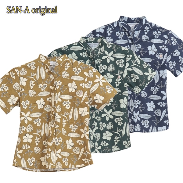 【送料無料】形態安定 ハンドペイントプランツ柄 かりゆしウェアP1025-18L L|サンエーオンラインショップ(本店)
