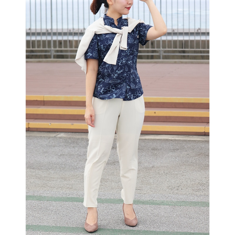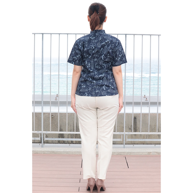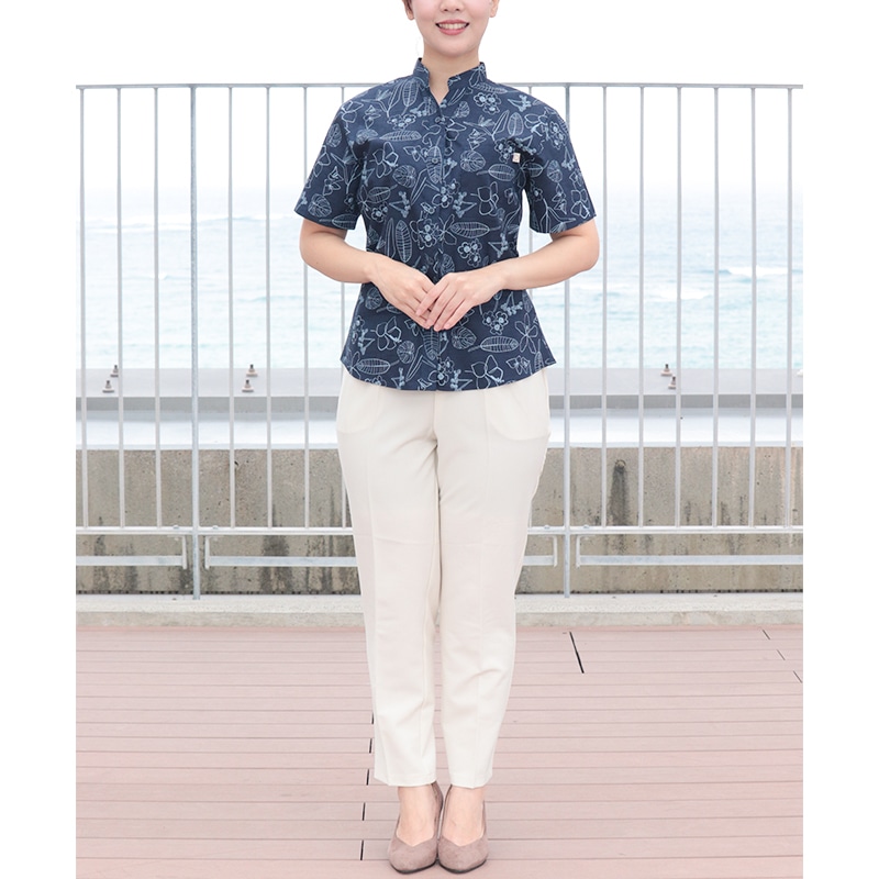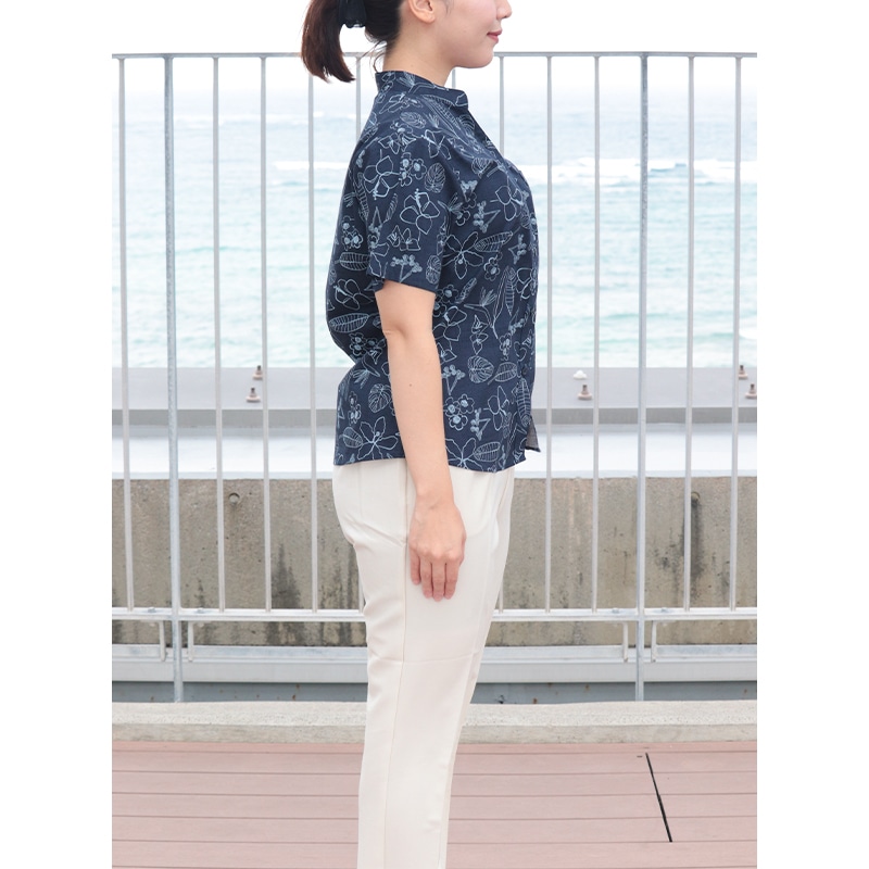 【送料無料】形態安定 ハンドペイントプランツ柄 かりゆしウェアP1025-18L L|サンエーオンラインショップ(本店)
