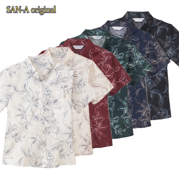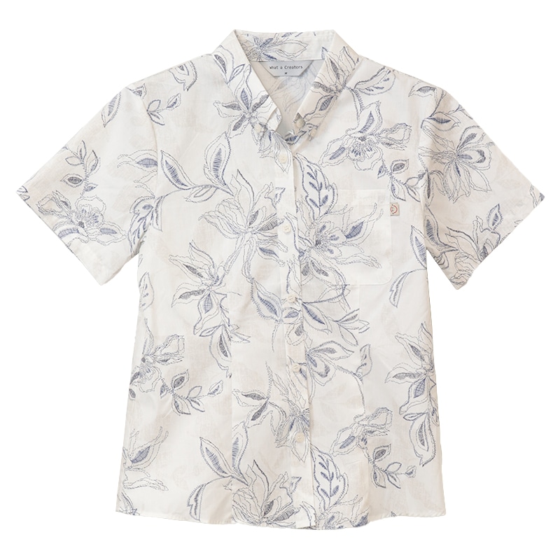 【送料無料】形態安定 刺繍フラワー柄 かりゆしウェアP1025-19L L|サンエーオンラインショップ(本店)