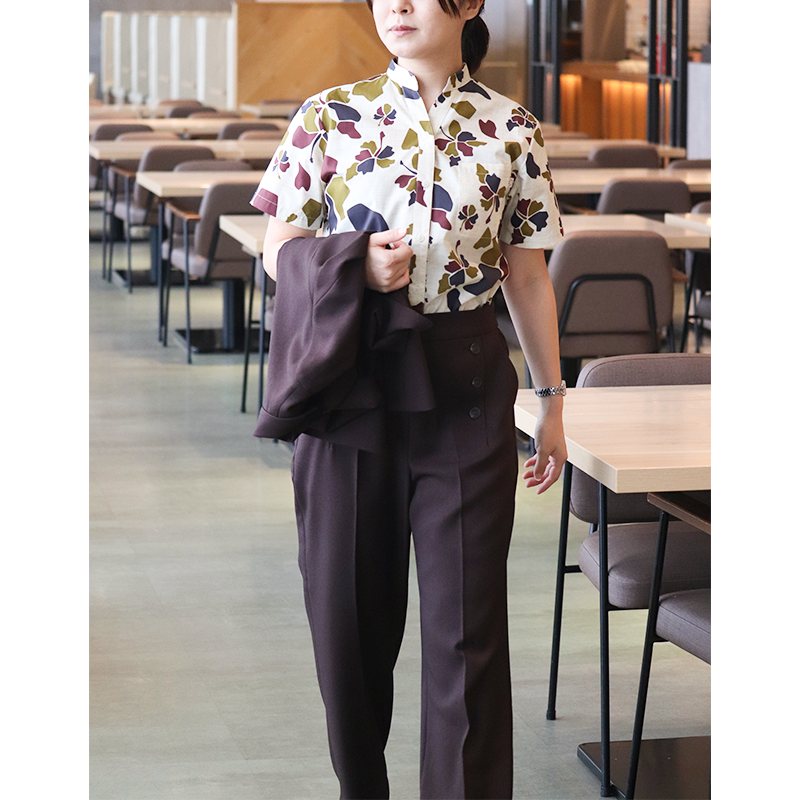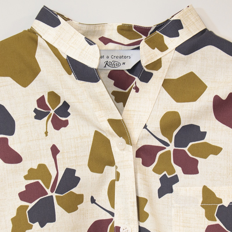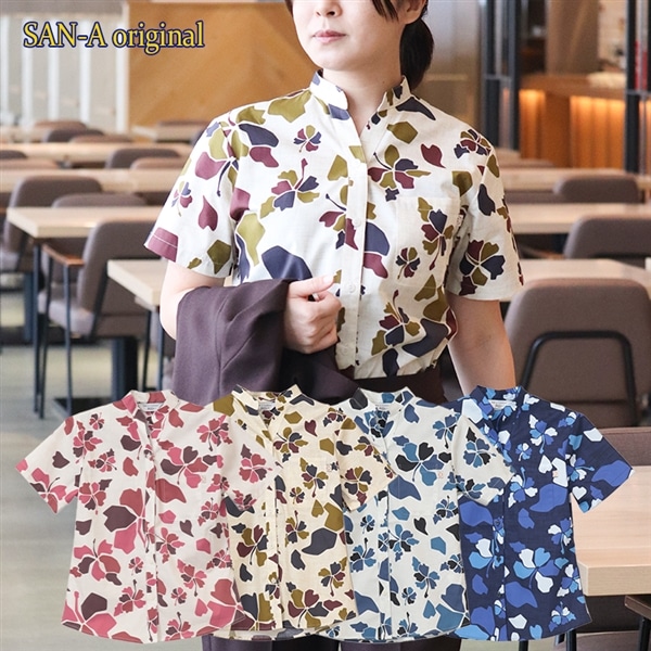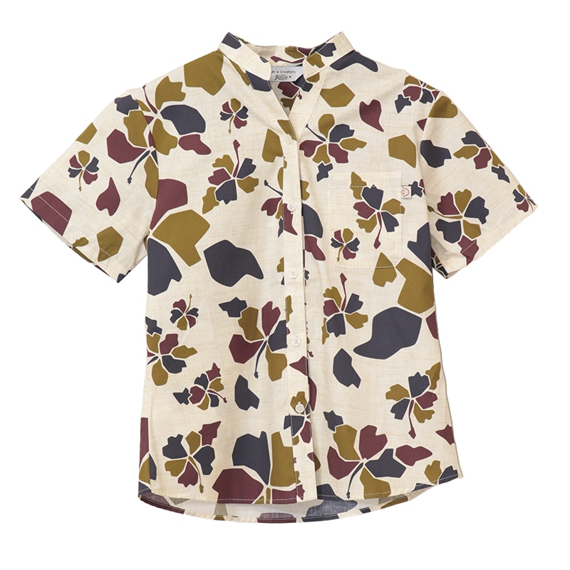 【送料無料】形態安定 ブロックフラワー柄 マオカラー かりゆしウェアP1025-21L|サンエーオンラインショップ(本店)