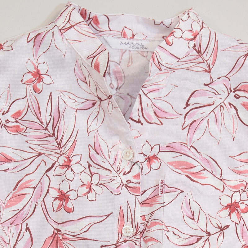 シャツの付属品と言えば、「ボタン」があります。 MAJUNではその「ボタン」選びにも徹底したこだわりを持っています。 プリントの柄や色に合わせ、ボタンの素材や色合いを選別し、着用シーンなども考慮し選定しています。 シャツのイメージで、キレイ目スタイル、ラフ間のあるカジュアルスタイル、それぞれのイメージに ボタンの素材感を組み合わせ商品企画し商品化しています。 天然素材「貝」や「ココナッツ」などボタンの存在感もしっかりシャツ全体を引き立てるように ワンランク上のものづくりをこだわっています。