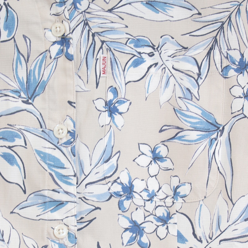 シャツの付属品と言えば、「ボタン」があります。 MAJUNではその「ボタン」選びにも徹底したこだわりを持っています。 プリントの柄や色に合わせ、ボタンの素材や色合いを選別し、着用シーンなども考慮し選定しています。 シャツのイメージで、キレイ目スタイル、ラフ間のあるカジュアルスタイル、それぞれのイメージに ボタンの素材感を組み合わせ商品企画し商品化しています。 天然素材「貝」や「ココナッツ」などボタンの存在感もしっかりシャツ全体を引き立てるように ワンランク上のものづくりをこだわっています。