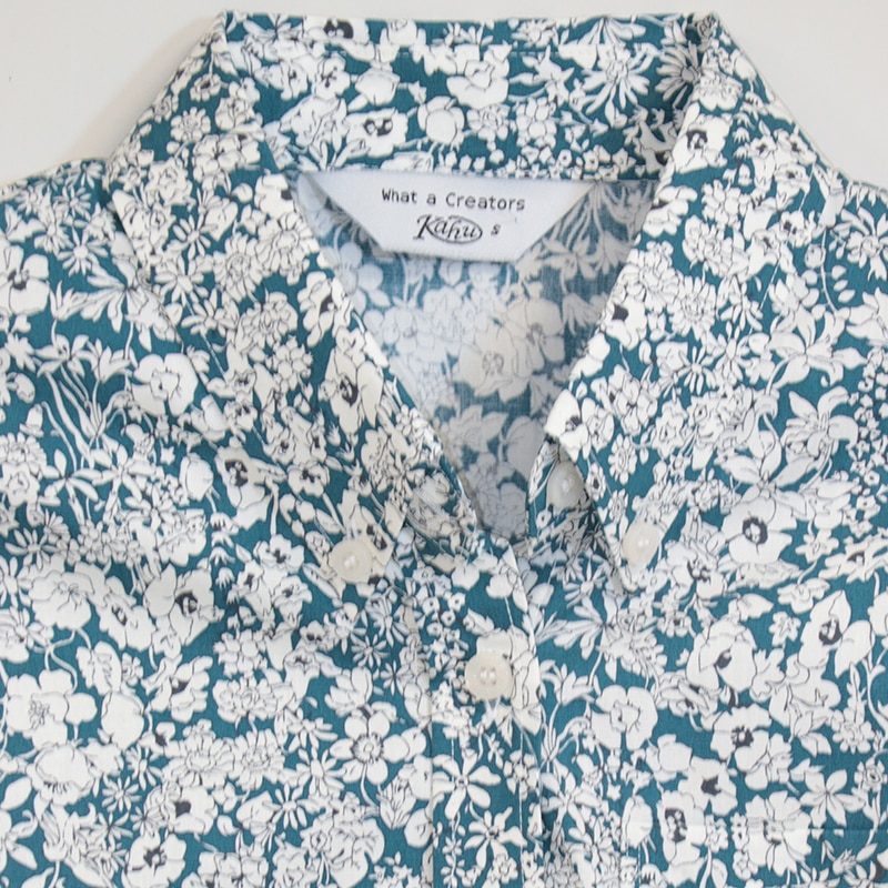 【送料無料】形態安定 小花総柄 7分袖かりゆしウェアP1025-23L|サンエーオンラインショップ(本店)