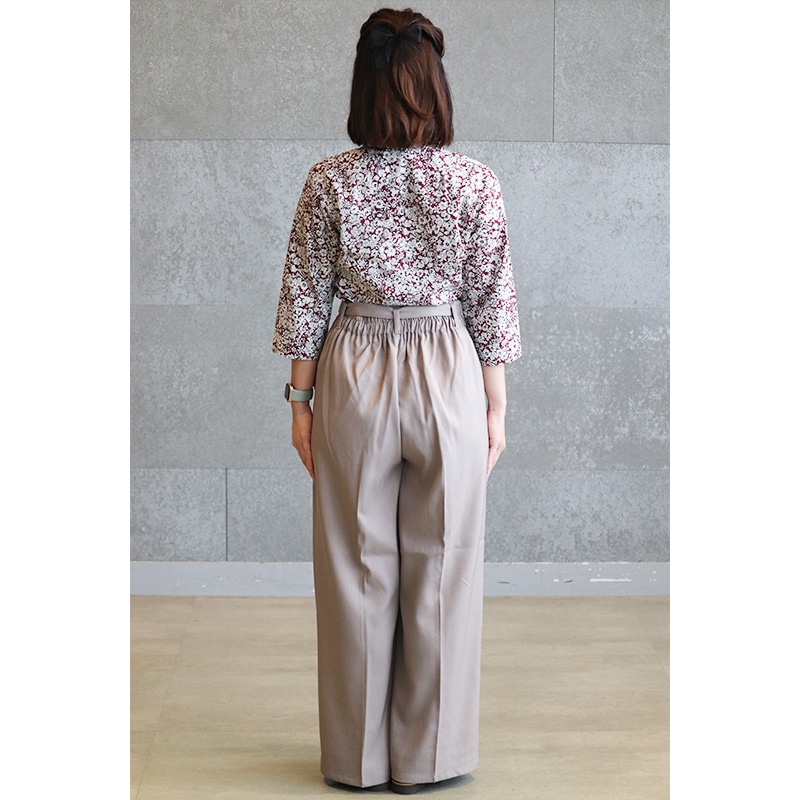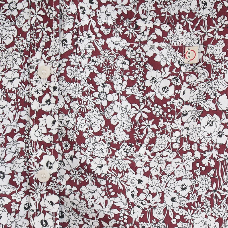 エンジに白い総柄が秋冬らしい7分袖のかりゆし。 ジレとも相性がぴったりで、仕事中も仕事後も色々なシーンで着用できます♪