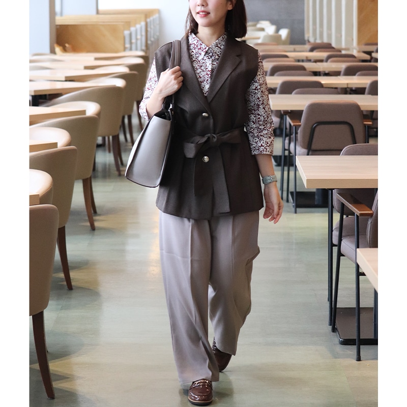エンジに白い総柄が秋冬らしい7分袖のかりゆし。 ジレとも相性がぴったりで、仕事中も仕事後も色々なシーンで着用できます♪