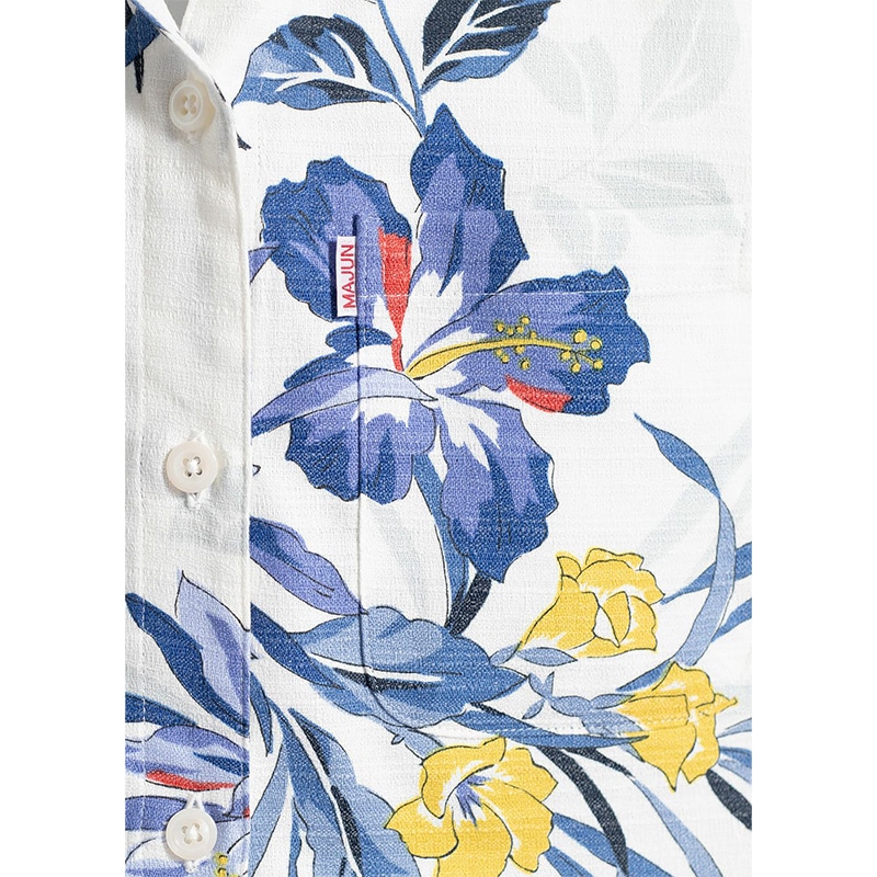 MAJUNの柄はすべてMAJUNオリジナルです。 沖縄の南国リゾートの雰囲気を抽出したエレガントで大胆な柄を提案しています。 それぞれの素材感を生かした柄も特徴です。