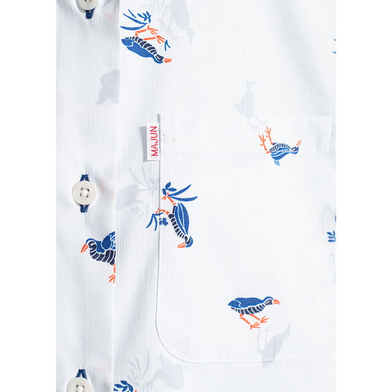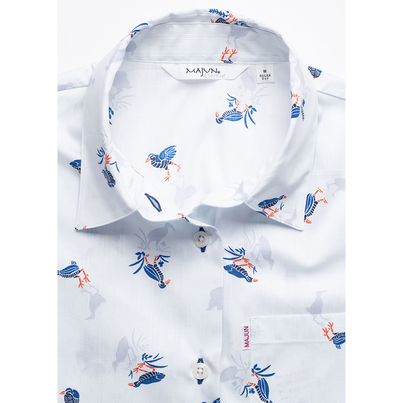 シャツの付属品と言えば、「ボタン」があります。 MAJUNではその「ボタン」選びにも徹底したこだわりを持っています。 プリントの柄や色に合わせ、ボタンの素材や色合いを選別し、着用シーンなども考慮し選定しています。 シャツのイメージで、キレイ目スタイル、ラフ間のあるカジュアルスタイル、それぞれのイメージに ボタンの素材感を組み合わせ商品企画し商品化しています。 天然素材「貝」や「ココナッツ」などボタンの存在感もしっかりシャツ全体を引き立てるように ワンランク上のものづくりをこだわっています。