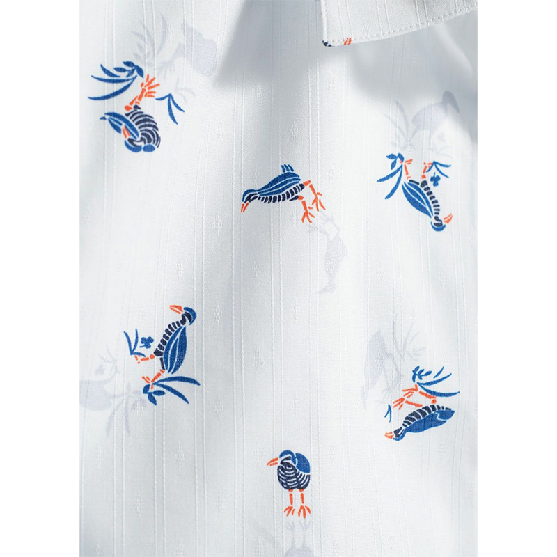 愛らしいポーズのヤンバルクイナの足元には、沖縄北部に生えるリュウキュウハナイカダなどの植物をあしらい、優しく上品な印象に。派手すぎず、年齢を問わず品よく着こなせるデザインでペアコーデにもおすすめです。