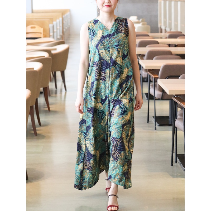 | ■モデル着用サイズ:Sサイズ 身長160cm ■モデル着用感 リゾートテイストの柄で、非日常を感じることができます。 大柄ですが、葉っぱがメインなので、派手になりすぎず大人な雰囲気がでます。 ウエストからタックが入ったデザインで、ゆったり着ることができます。 |