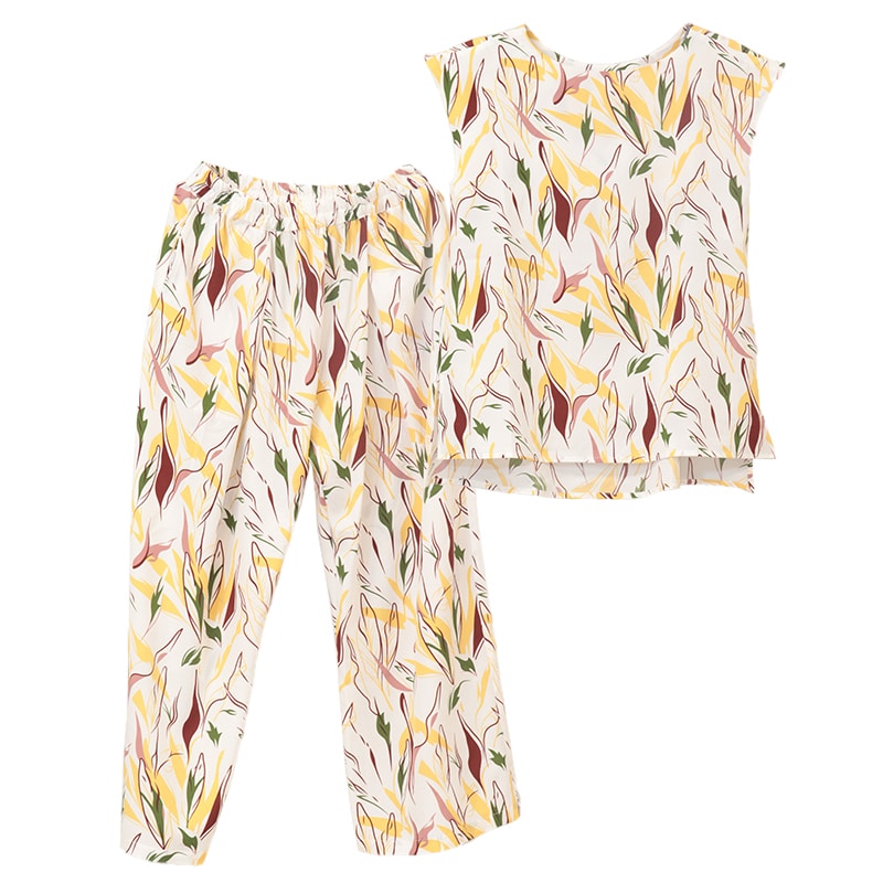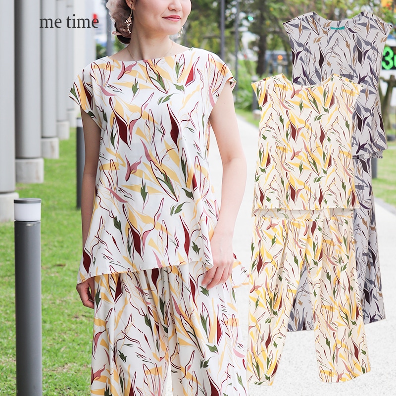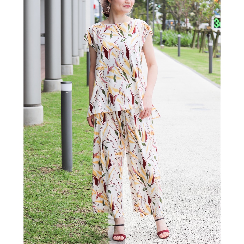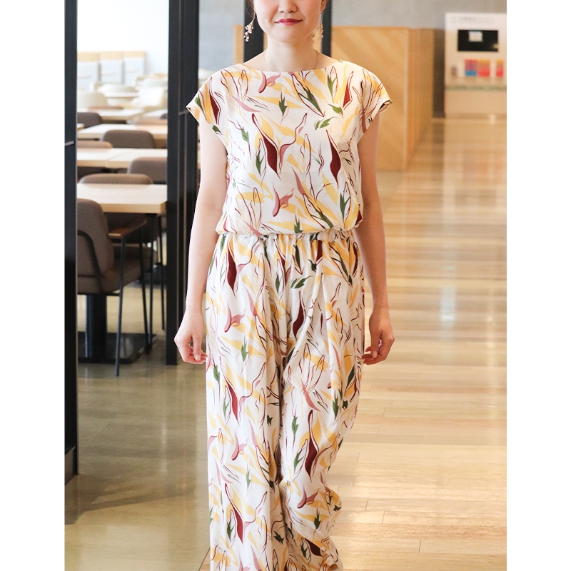 トップスとパンツのセットアップになっていて、色々な着方ができます。