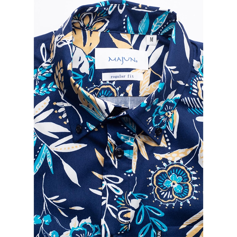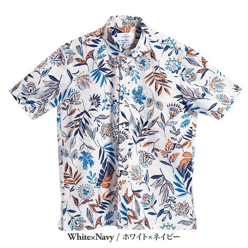 シャツの付属品と言えば、「ボタン」があります。 MAJUNではその「ボタン」選びにも徹底したこだわりを持っています。 プリントの柄や色に合わせ、ボタンの素材や色合いを選別し、着用シーンなども考慮し選定しています。 シャツのイメージで、キレイ目スタイル、ラフ間のあるカジュアルスタイル、それぞれのイメージに ボタンの素材感を組み合わせ商品企画し商品化しています。 天然素材「貝」や「ココナッツ」などボタンの存在感もしっかりシャツ全体を引き立てるように ワンランク上のものづくりをこだわっています。