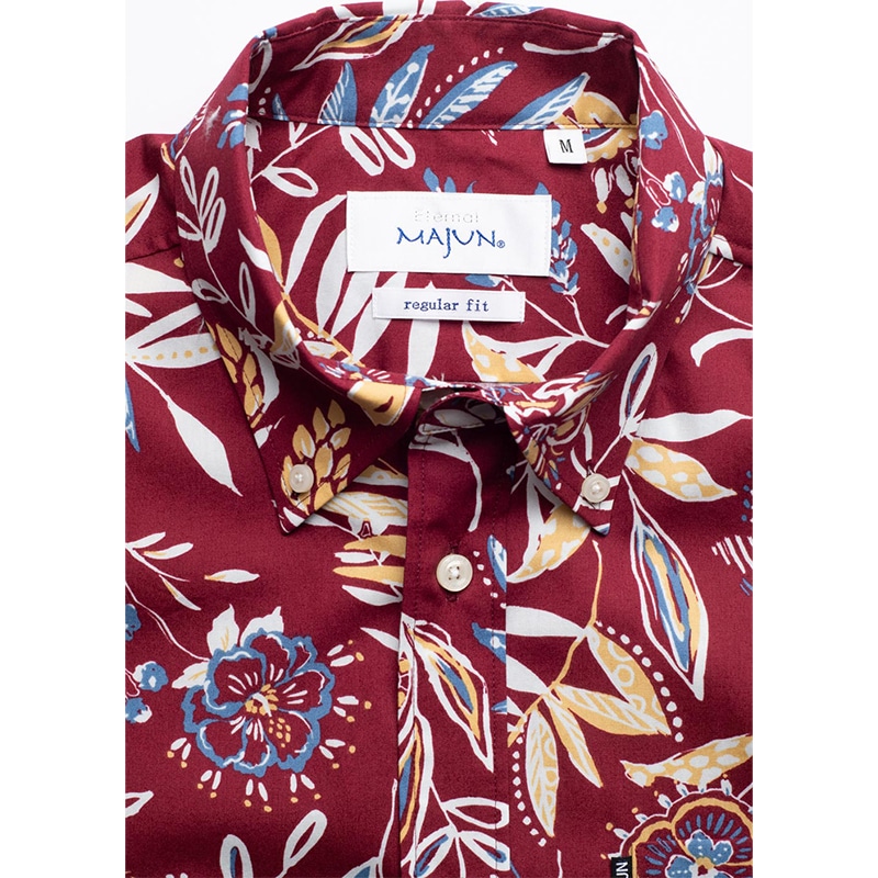 シャツの付属品と言えば、「ボタン」があります。 MAJUNではその「ボタン」選びにも徹底したこだわりを持っています。 プリントの柄や色に合わせ、ボタンの素材や色合いを選別し、着用シーンなども考慮し選定しています。 シャツのイメージで、キレイ目スタイル、ラフ間のあるカジュアルスタイル、それぞれのイメージに ボタンの素材感を組み合わせ商品企画し商品化しています。 天然素材「貝」や「ココナッツ」などボタンの存在感もしっかりシャツ全体を引き立てるように ワンランク上のものづくりをこだわっています。