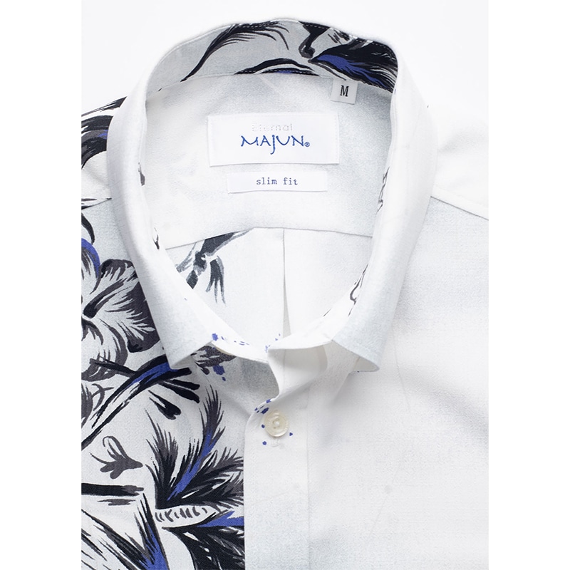 シャツの付属品と言えば、「ボタン」があります。 MAJUNではその「ボタン」選びにも徹底したこだわりを持っています。 プリントの柄や色に合わせ、ボタンの素材や色合いを選別し、着用シーンなども考慮し選定しています。 シャツのイメージで、キレイ目スタイル、ラフ間のあるカジュアルスタイル、それぞれのイメージに ボタンの素材感を組み合わせ商品企画し商品化しています。 天然素材「貝」や「ココナッツ」などボタンの存在感もしっかりシャツ全体を引き立てるように ワンランク上のものづくりをこだわっています。