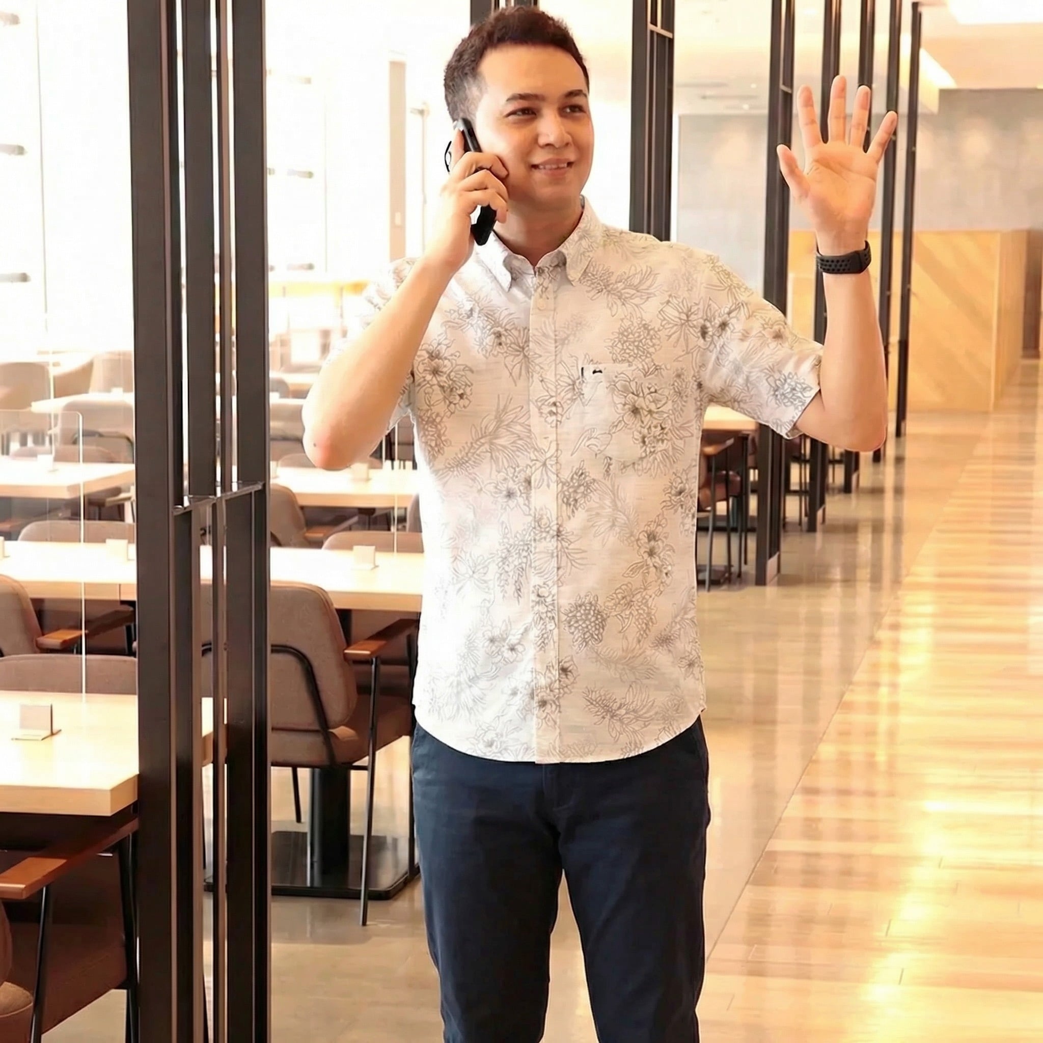 すっきりとしたボタンダウン襟とスリムなシルエットが男性らしさを引き立て、リゾートはもちろん結婚式やカジュアルなシーンでも品よく決まります。