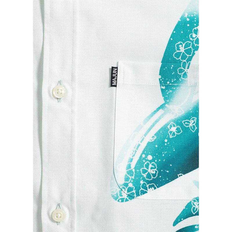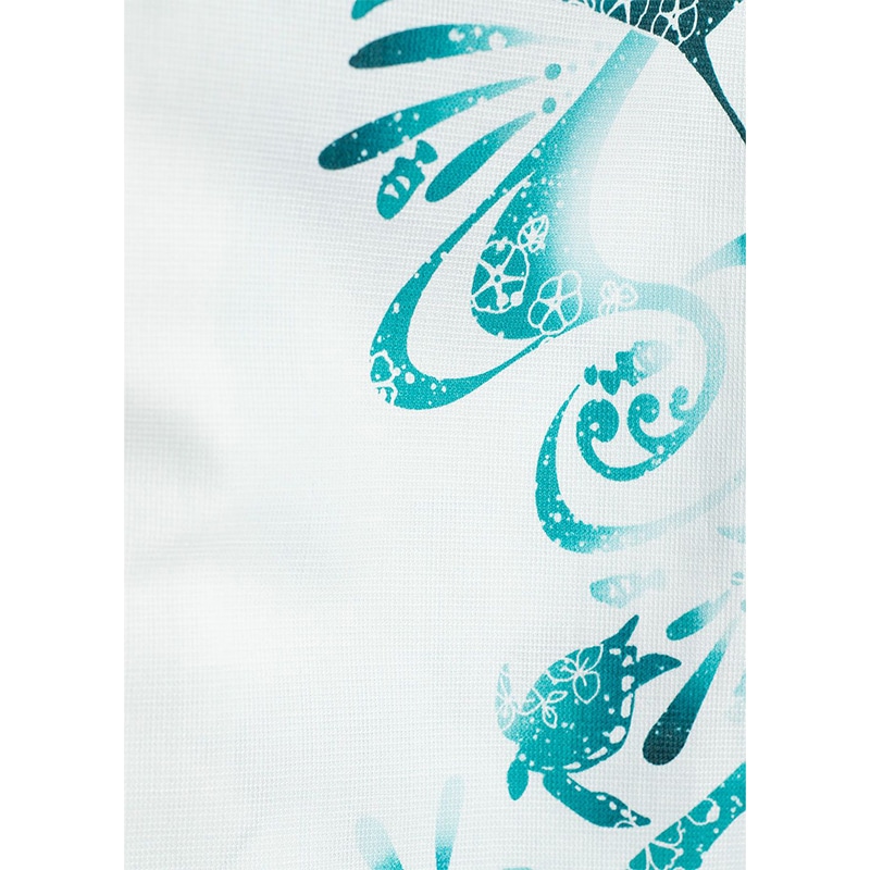 沖縄の透き通った海をイメージし、クジラ、マンタ、ウミガメ、カクレクマノミが泳ぐ姿を表現。鮮やかなカラーでペアコーデにもおすすめです。