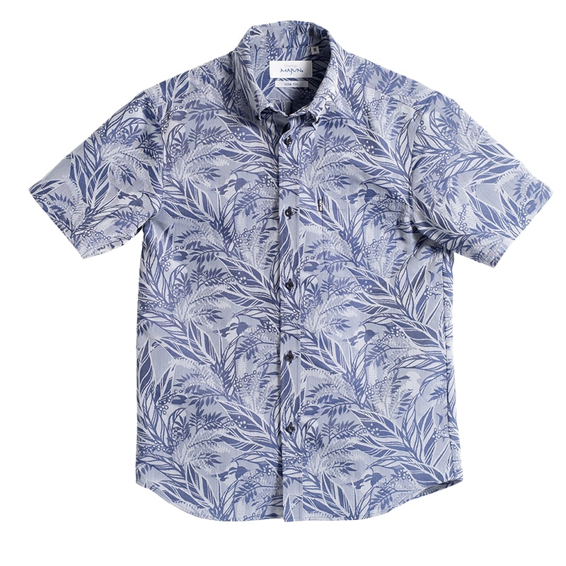 すっきりとしたボタンダウン襟とスリムなシルエットが男性らしさを引き立て、リゾートはもちろん結婚式やカジュアルなシーンでも品よく決まります。
