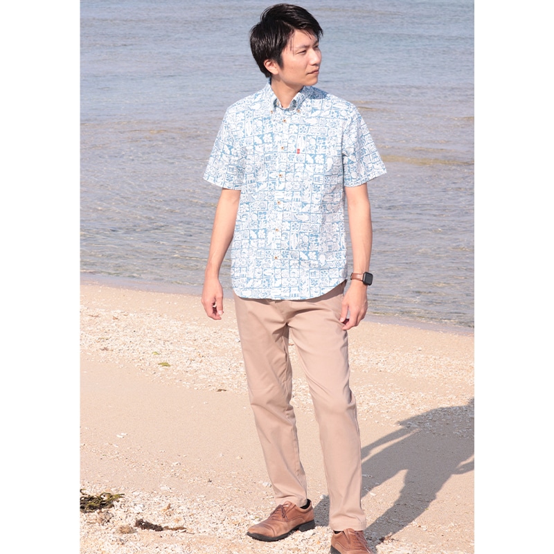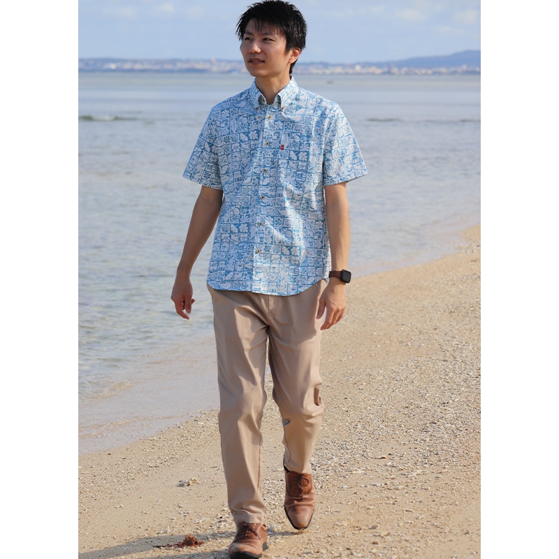【送料無料】ビンテージOKINAWA柄 かりゆしウェア 1860732|サンエーオンラインショップ(本店)