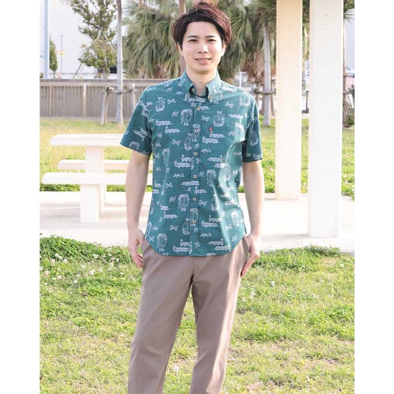 【送料無料】進貢船&ウェーブ柄 かりゆしウェア 1860734|サンエーオンラインショップ(本店)