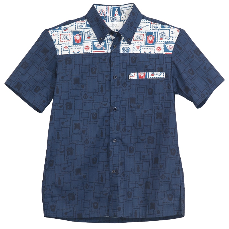 【送料無料】 リュウキュウトラベラー柄 かりゆしウェアP-FSM51013S|サンエーオンラインショップ(本店)