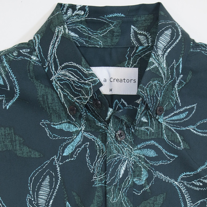 【送料無料】形態安定 刺繍フラワー柄 かりゆしウェアP1025-19