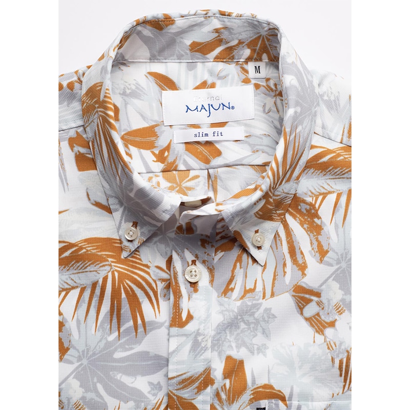 シャツの付属品と言えば、「ボタン」があります。 MAJUNではその「ボタン」選びにも徹底したこだわりを持っています。 プリントの柄や色に合わせ、ボタンの素材や色合いを選別し、着用シーンなども考慮し選定しています。 シャツのイメージで、キレイ目スタイル、ラフ間のあるカジュアルスタイル、それぞれのイメージに ボタンの素材感を組み合わせ商品企画し商品化しています。 天然素材「貝」や「ココナッツ」などボタンの存在感もしっかりシャツ全体を引き立てるように ワンランク上のものづくりをこだわっています。
