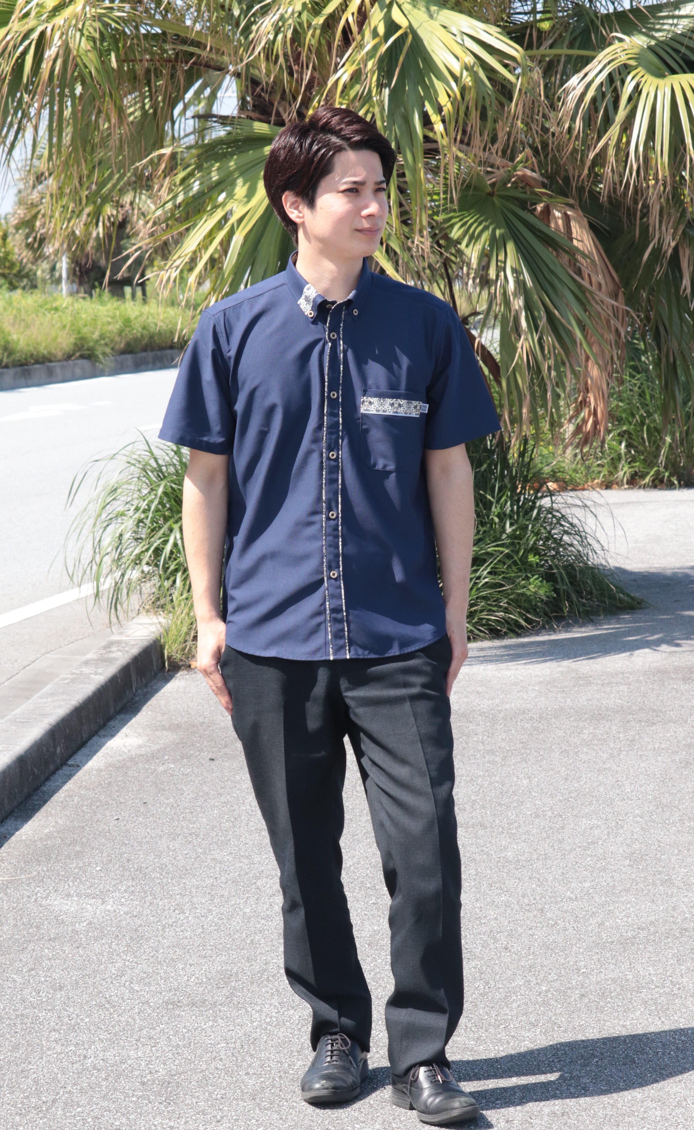 【送料無料】 衿はみ出しライン柄かりゆしウェア P-SAT1806|サンエーオンラインショップ(本店)