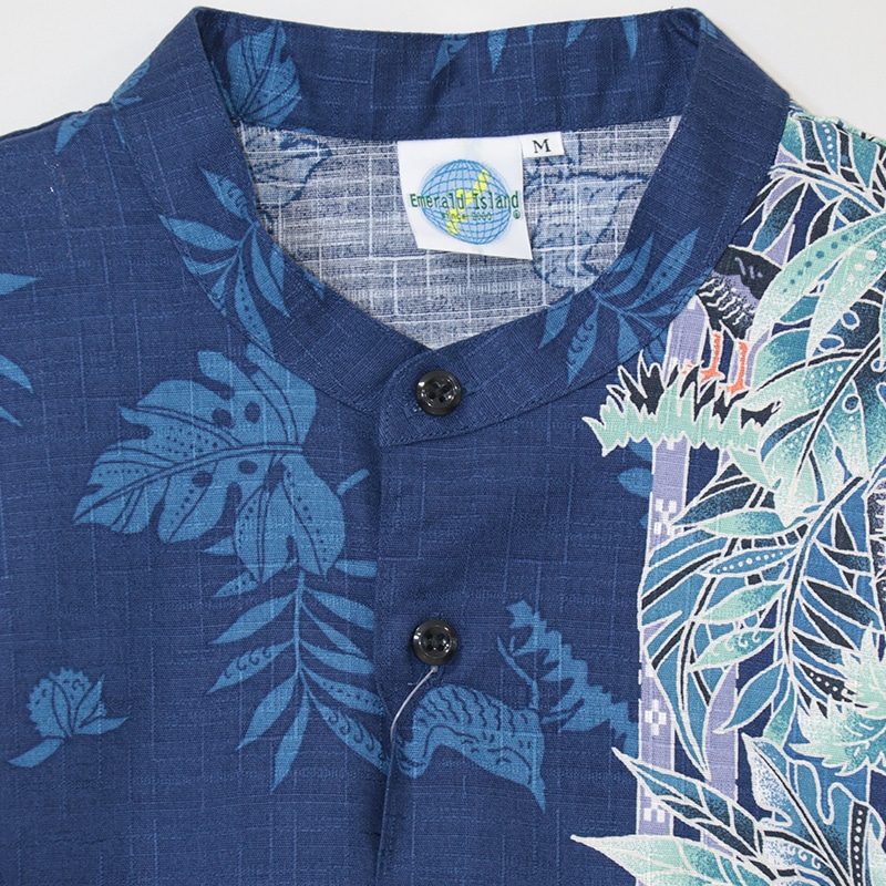 【送料無料】ヤンバルクイナ柄 バンドカラー かりゆしウェアP-SAEM1827S