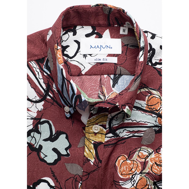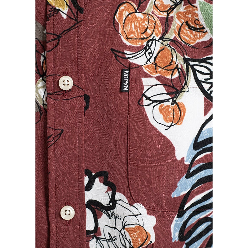 シャツの付属品と言えば、「ボタン」があります。 MAJUNではその「ボタン」選びにも徹底したこだわりを持っています。 プリントの柄や色に合わせ、ボタンの素材や色合いを選別し、着用シーンなども考慮し選定しています。 シャツのイメージで、キレイ目スタイル、ラフ間のあるカジュアルスタイル、それぞれのイメージに ボタンの素材感を組み合わせ商品企画し商品化しています。 天然素材「貝」や「ココナッツ」などボタンの存在感もしっかりシャツ全体を引き立てるように ワンランク上のものづくりをこだわっています。