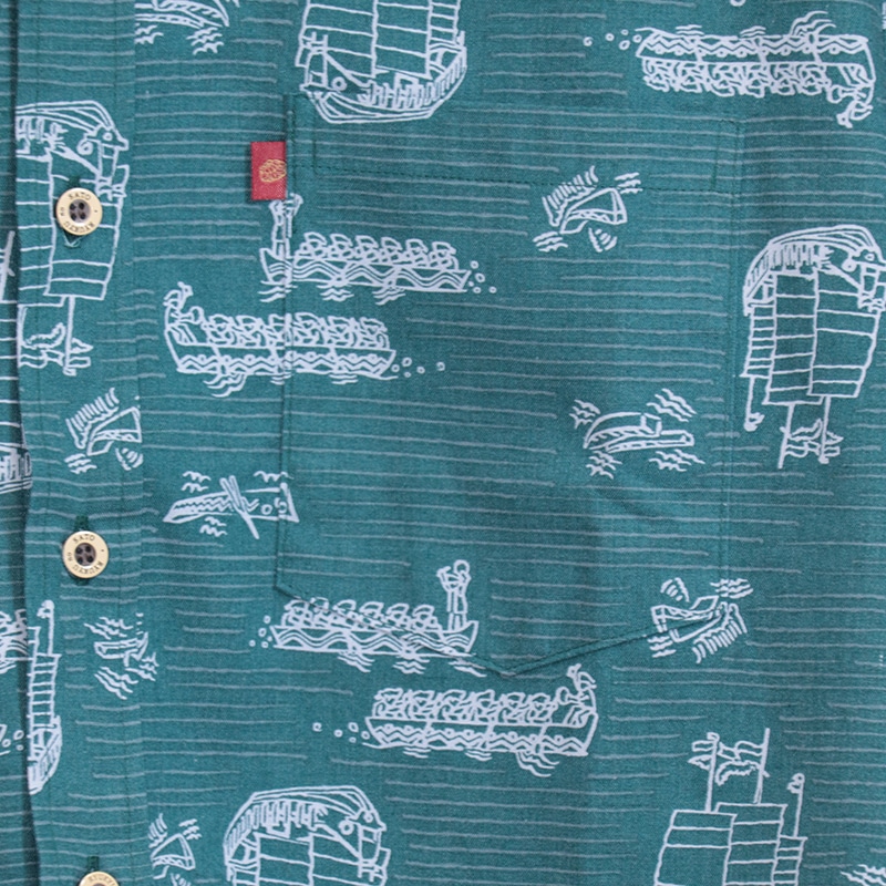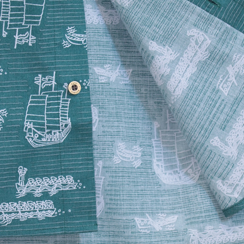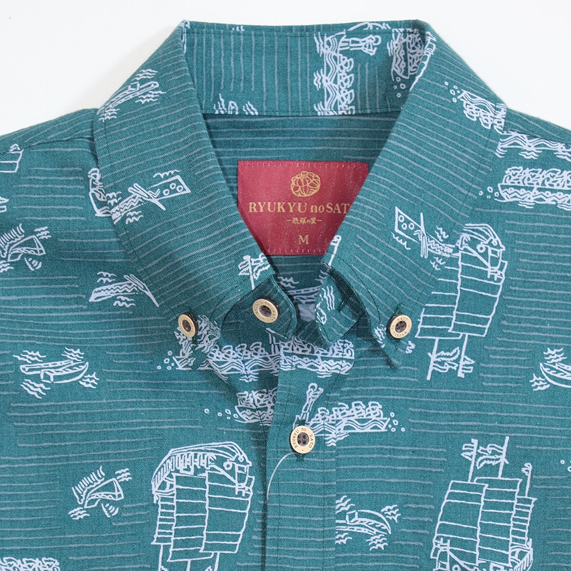 【送料無料】進貢船&ウェーブ柄 かりゆしウェア 1860734|サンエーオンラインショップ(本店)