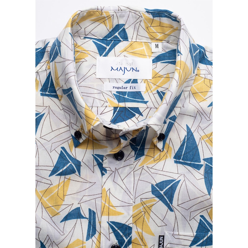 シャツの付属品と言えば、「ボタン」があります。 MAJUNではその「ボタン」選びにも徹底したこだわりを持っています。 プリントの柄や色に合わせ、ボタンの素材や色合いを選別し、着用シーンなども考慮し選定しています。 シャツのイメージで、キレイ目スタイル、ラフ間のあるカジュアルスタイル、それぞれのイメージに ボタンの素材感を組み合わせ商品企画し商品化しています。 天然素材「貝」や「ココナッツ」などボタンの存在感もしっかりシャツ全体を引き立てるように ワンランク上のものづくりをこだわっています。