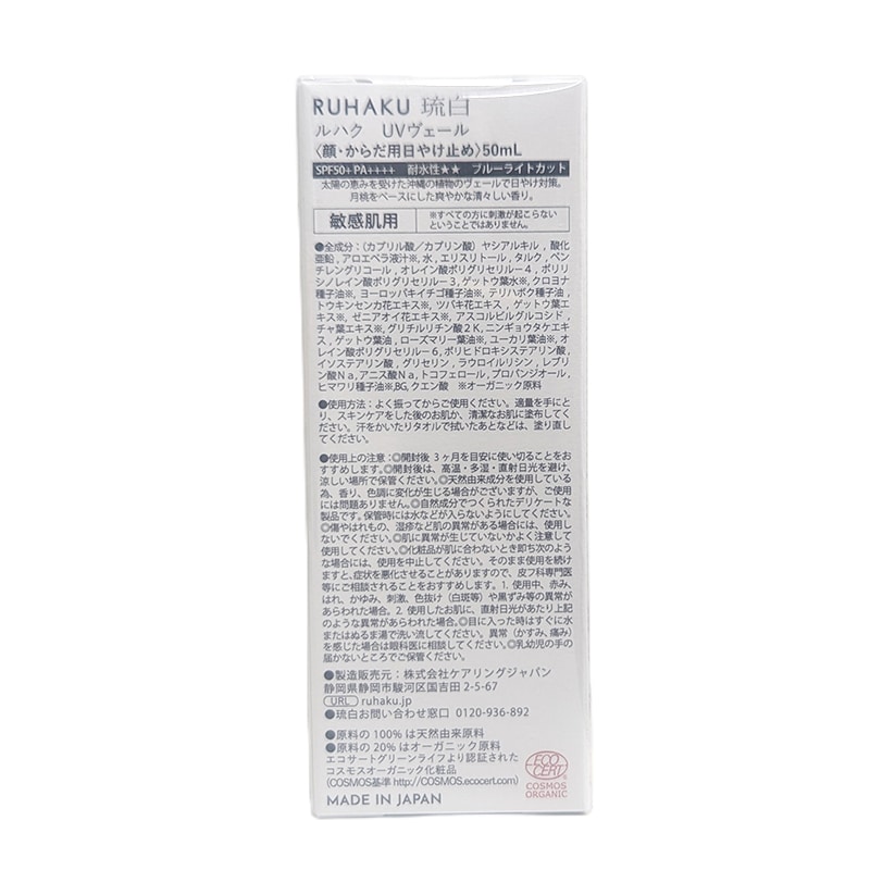 RUHAKU 琉白 月桃UVヴェール〈顔・からだ用日やけ止め〉SPF50+ PA++++ 50ml
