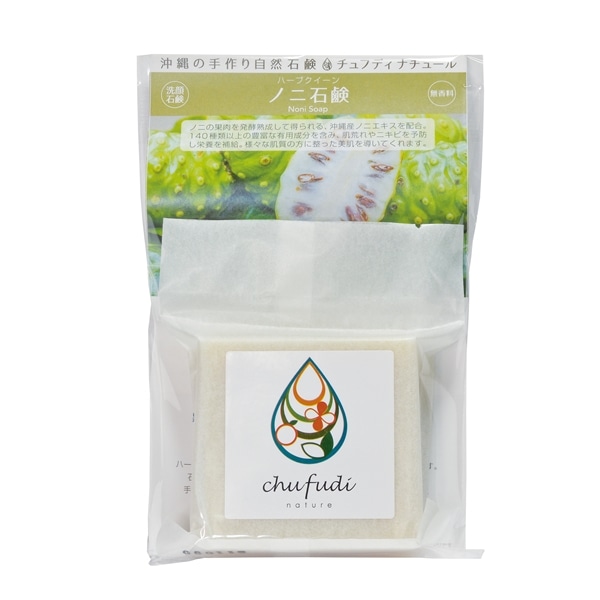 石ケン素地(パーム油、パーム核油、ヤシ油)、水、グリセリン、ヤエヤマアオキ果汁(ノニ発酵エキス)