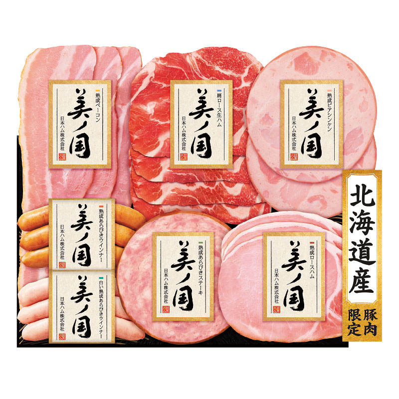 - 熟成ロースハム45g、熟成ベーコン48g、肩ロース生ハム30g、熟成ビアシンケン40g、熟成あらびきステーキ47g、熟成あらびきウィンナー60g、白い熟成あらびきウインナー60g