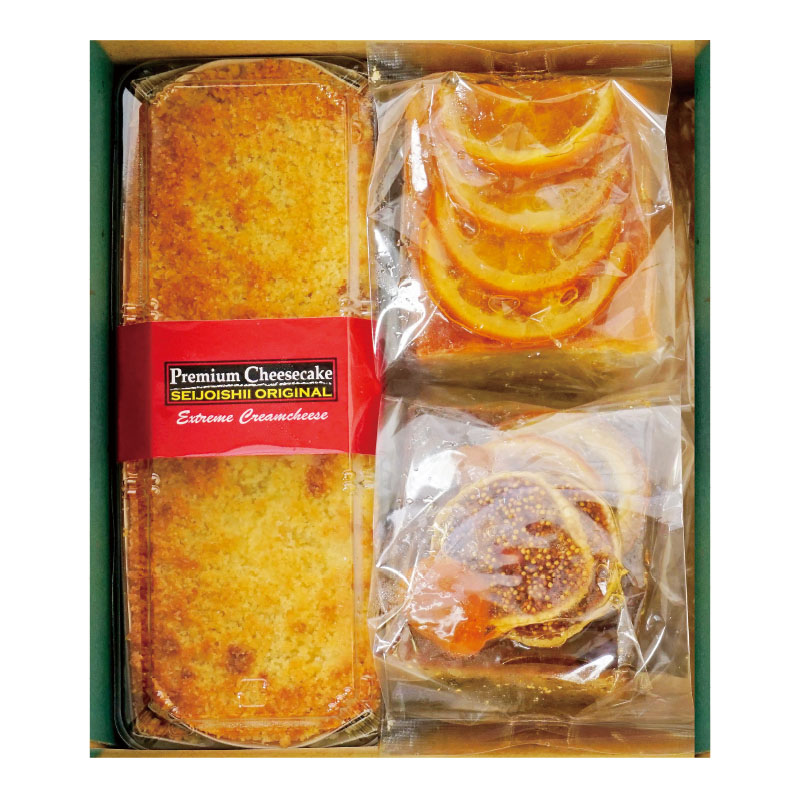 (プレミアムチーズケーキ/オレンジケーキハーフ/フルーツケーキハーフ 各1本)