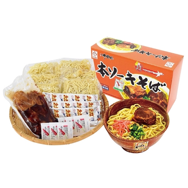 麺180g×6・粉末そばだし(豚骨味)×6・味付け本ソーキ肉6個入×1・島唐辛子泡盛漬け×6袋 (賞味期間17日)