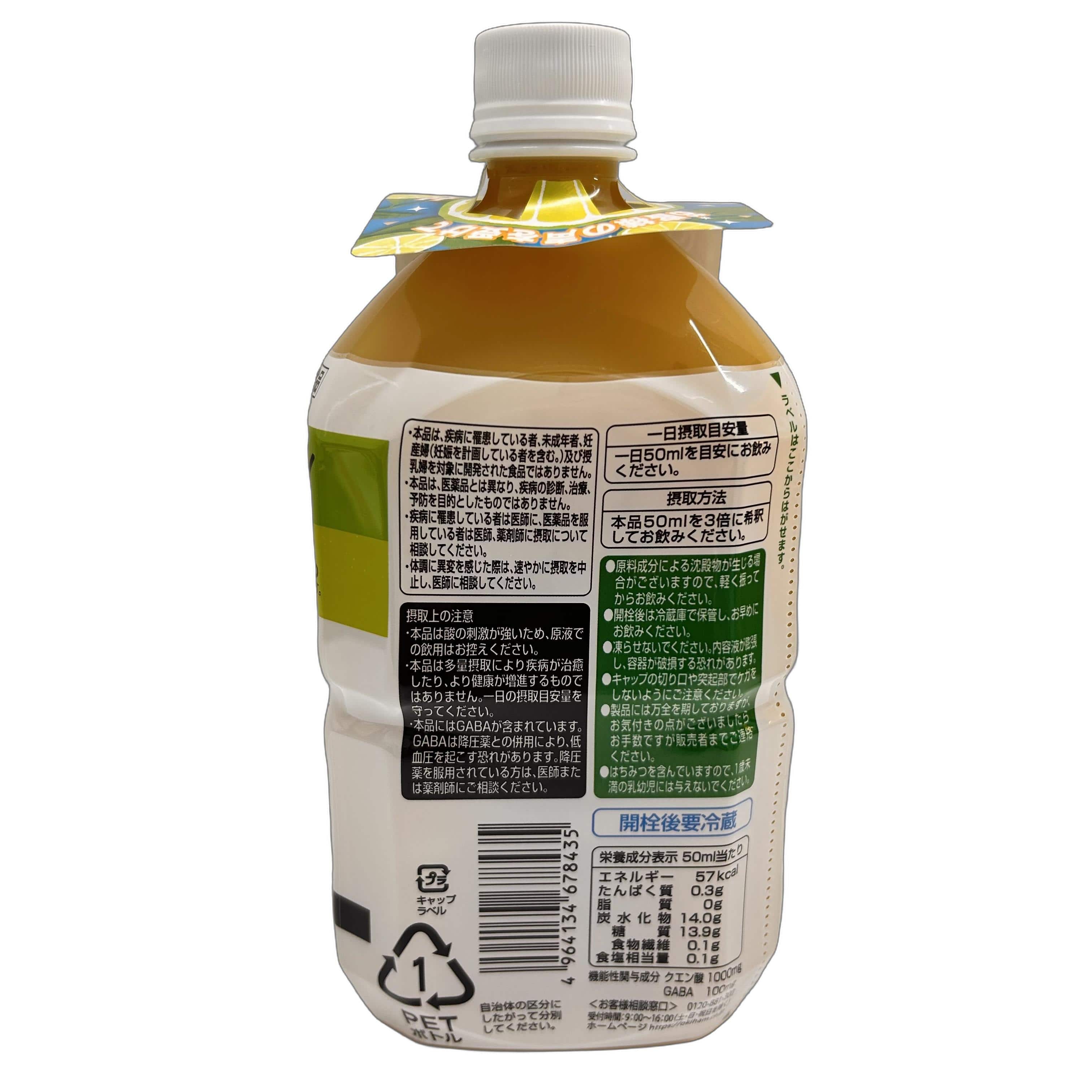 1日の接種目安(50ml)当りの含有量:クエン酸1000mg、GABA100mg 機能性表示食品 届出番号:J301
