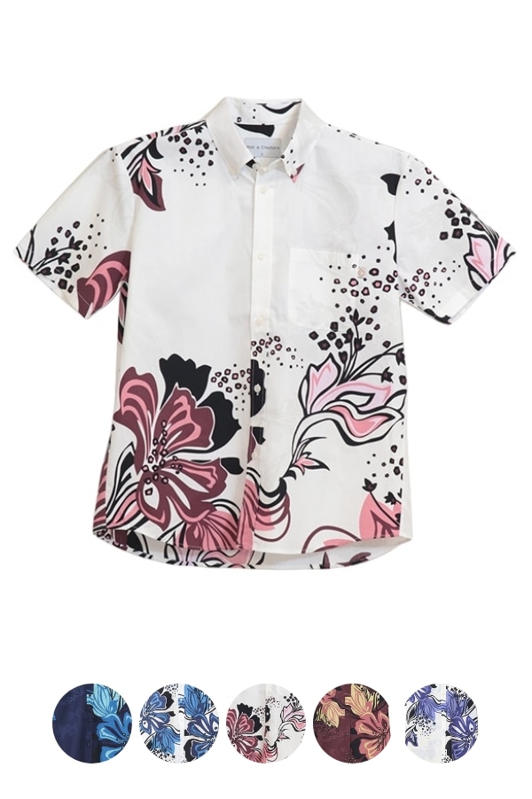 どちらも、襟の開いた半袖シャツが基本で、さまざまな絵柄が描かれているのが特徴です。